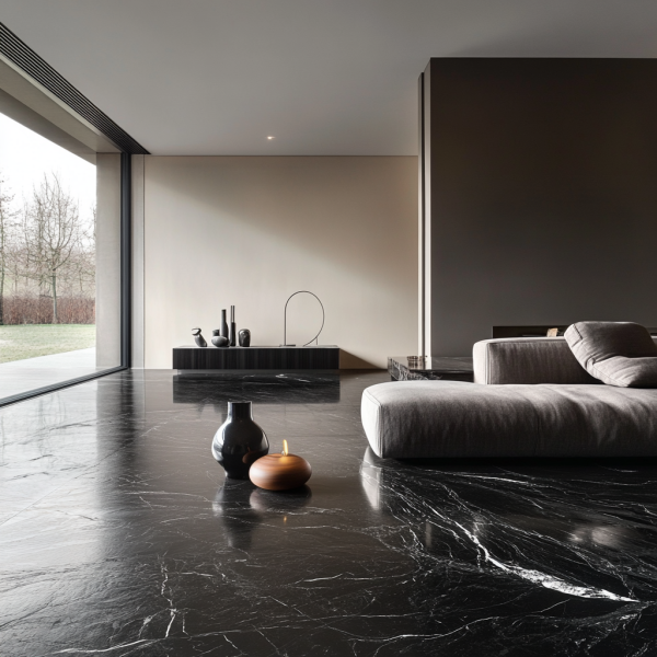 Dark and enigmatic, this deep black marble is a statement of modernity. With gray, reddish, and brown veins that add contrast, it is the ideal choice for minimalist, industrial, and luxury spaces.